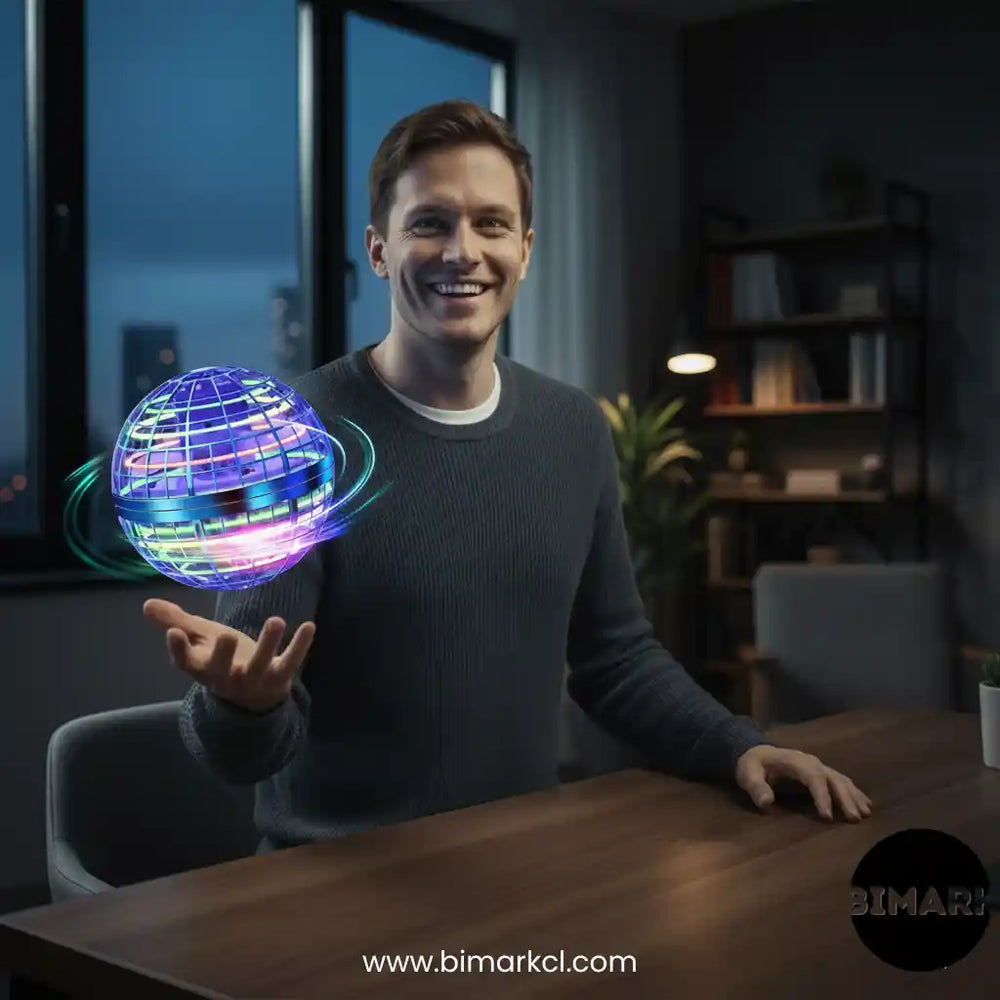 Totalmente. Está fabricado con nuestro material PP Flexible Anti-Impactos, que es ligero y resistente, diseñado para rebotar suavemente en paredes o muebles sin causar daños. En cuanto al ruido, produce un zumbido suave y bajo, similar al de un ventilador de computador, diseñado para no ser una distracción ni molestar a otros en casa.